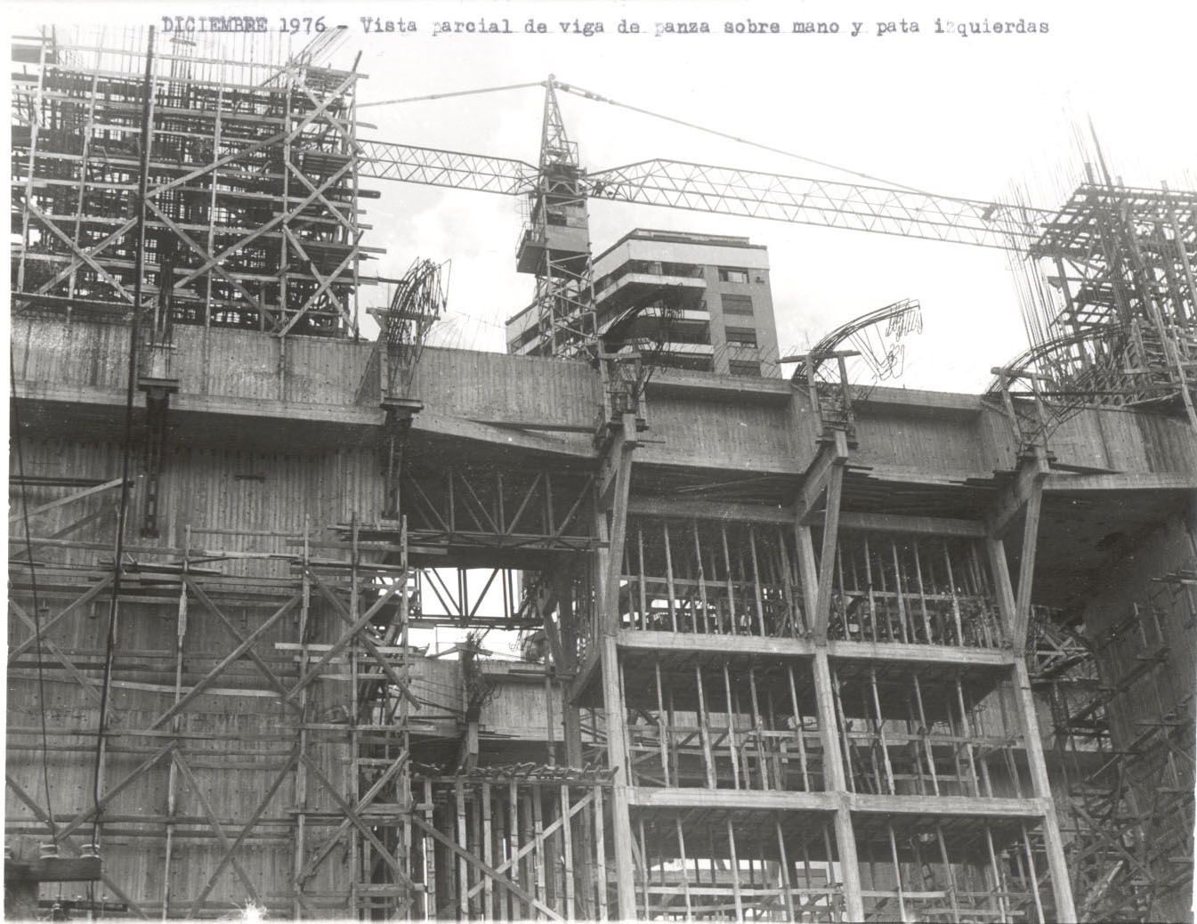 Indirecta: el cuerpo más representativo del edificio, debido a la magnitud de la carga (7.800 toneladas), se sustenta sobre cuatro núcleos, los cuales se apoyan en 13 pilotes cada uno. Estos pilotes tienen un diámetro de 1,20 metros y una profundidad fluctuante entre 25 y 27 metros del nivel del terreno.