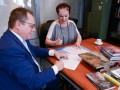 El Embajador de Ucrania en Argentina Yurii Diudin y la directora de la BNMM Elsa Barber, firmaron a fines de diciembre un convenio para formalizar esta donación conformada por veinte títulos en idioma ucraniano que será incorporados al acervo de la Biblioteca.