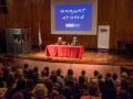 La visita de Atwood fue un lujo para los miles de seguidores que cultiva en el país desde hace décadas. El diálogo que la poeta, novelista y guionista compartió con el director de la Biblioteca Nacional se desarrolló en el Auditorio Jorge Luis Borges ante una sala repleta. Debido a la demanda del público se habilitó la Sala Augusto Raúl Cortazar para que sus seguidores pudieran verla por streaming y se instaló una pantalla gigante en la explanada de acceso al edificio para que también desde allí se disfrutara de la charla.